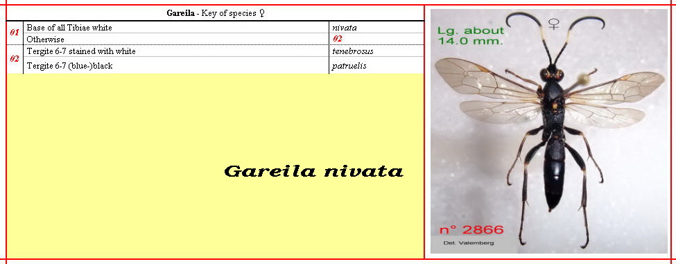 OXYPYGI (sensu Wesmael) ♀ of France & Italy : Keys of Genera Gareila, Virgichneumon, Vulgichneumon - Ichneumonidae - Ichneumoninae - Ichneumonini
