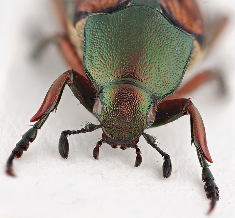 Bene. Effettivamente gli appartenenti a questo genere sono un bel rebus. Mi verebbe da dire, chi ha voglia di occuparsi e prendere la questione in mano per fare una bella revisione? Il mio contributo può essere questo purtroppo unico esemplare raccolto. Intanto l'immagine frontale con testa, pronoto e antenne; di marroncino non vi è traccia, semmai una riflesso bronzeo su tutte le superfici verdi.
