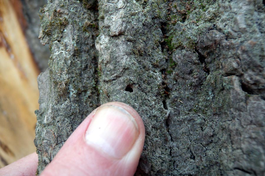 Non facile da vedere in natura, ma nel nord Italia non c'è praticamente un salice vecchio che non presenti i suoi fori di sfarfallamento nella corteccia.