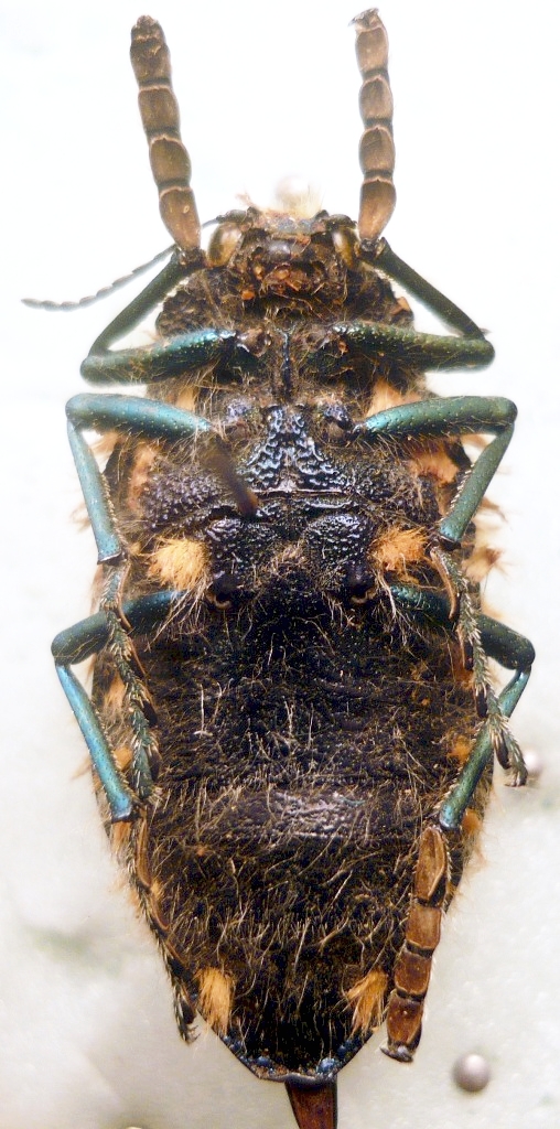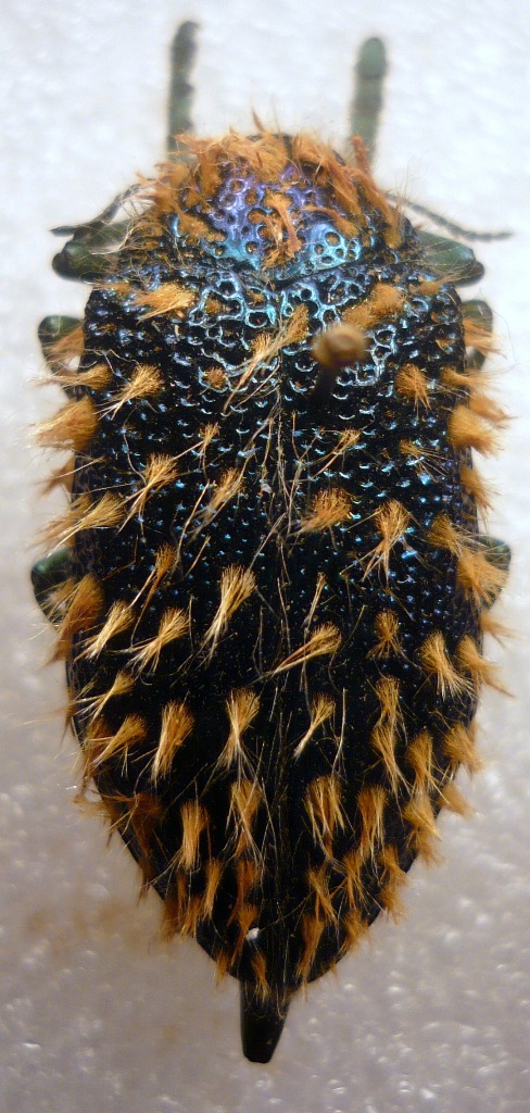 Attualmente, come dicevo, tutte le forme di Julodis cirrosa sono state riunite in un unico taxon. Anche se non conosco bene le specie sudafricane, io avrei lasciato distinte a livello di sottospecie almeno J. cirrosa cirrosa e J. cirrosa hirtiventris (comprendendo in quest'ultima anche la sanguinipilis), Comunque, non posso determinare con certezza questo esemplare, anche se sembra molto una cirrosa (o cirrosa hirtiventris che sia), perchè Julodis viridipes è praticamente indistinguibile da sopra. Per distinguerli bisogna guardare lo sterno, quindi serve una foto ventrale. |