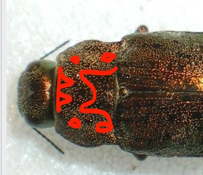 The very fast differentiation between D. berolinensis and D. alni is that in D. berolinensis the pronotum has some less punctured reliefs which reminds a little of Capnodis. I have drown with red..... just take a good look. In D. alni, the pronotum has only 2 wide parallel and paramedian longitudinal bands with less puncture.
