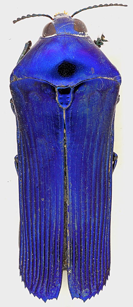 Non è una bestia di facile reperimento adesso, ma in passato doveva essere più comune. Pensate che in un corridoio del Museo Civico di Zoologia di Roma c'è appesa ad una parete, un po' in disparte, una composizione risalente a non so quando ma certamente non recente, fatta con coleotteri esotici a costituire una specie di mosaico, in cui ci sono decine di esemplari di questa specie e di un'altra simile ma con una fascia arancione trasversale sulle elitre, anch'essa ormai quasi introvabile. |
