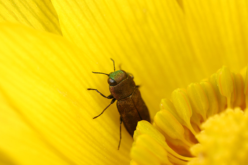 Today I was in the field close to Budapest where last year I've found Anthaxia chevrieri (=funerula) on the flowers of Adonis vernalis. I was with a friend and we found 2 male specimens! They proved to be the first jewel beetle of this year.