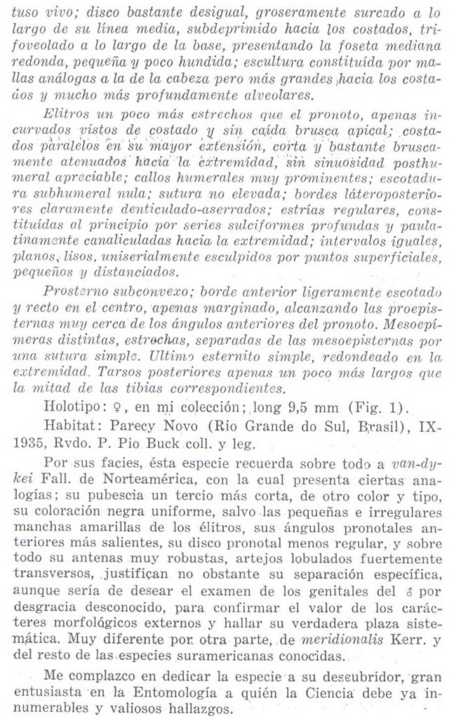 3 - scultura e forma del pronoto: per la forma vedi sopra. Teniamo conto che il disegno può non essere molto preciso, e che comunque esiste una cosa che si chiama variabilità individuale. Per la scultura, effettivamente sembra molto diversa. Nella foto sembra ci siano solo delle fossette, ma oggettivamente non si vede benissimo. Nel disegno, apparentemente ci sarebbe una sorta di reticolo di cellette, tipo quelle delle Anthaxia (disegnato solo sul lato sinistro, che appare raffigurato senza la pubescenza). Ma per quanto ne so, nelle Acmaeodera non c'è una struttura del genere, ma solo delle fossette, più o meno profonde, più o meno vicine, più o meno regolari. Come dicevo, è un disegno e va preso con cautela. Di questa reticolazione parla pure la descrizione, ma andrebbe vista (e anche l'esemplare in foto andrebbe osservato un po' meglio di quanto sia possibile fare ora)