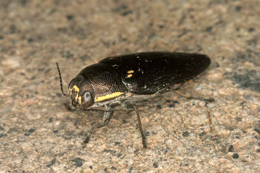 Buprestis novemmaculata Linnaeus, 1767 Gli esemplari del litorale romano e di Roma stessa hanno spesso la maculazione gialla elitrale molto ridotta, come questo esemplare, o addirittura assente. |