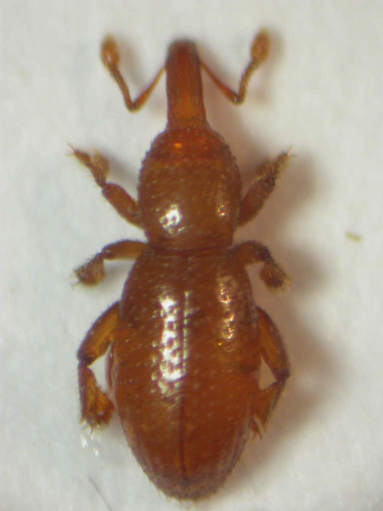 Secondo reperto della giornata dedicata agli endogei: uno splendido curculionide cieco, lungo poco più di 1 mm, trovato dopo il lavaggio del terzo sacco di terra: :hp: :hp: notate le particolari tibie espanse: