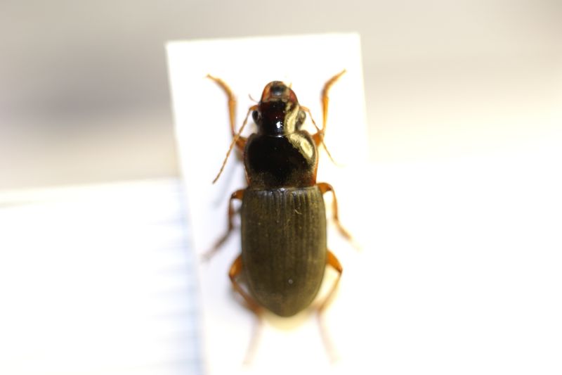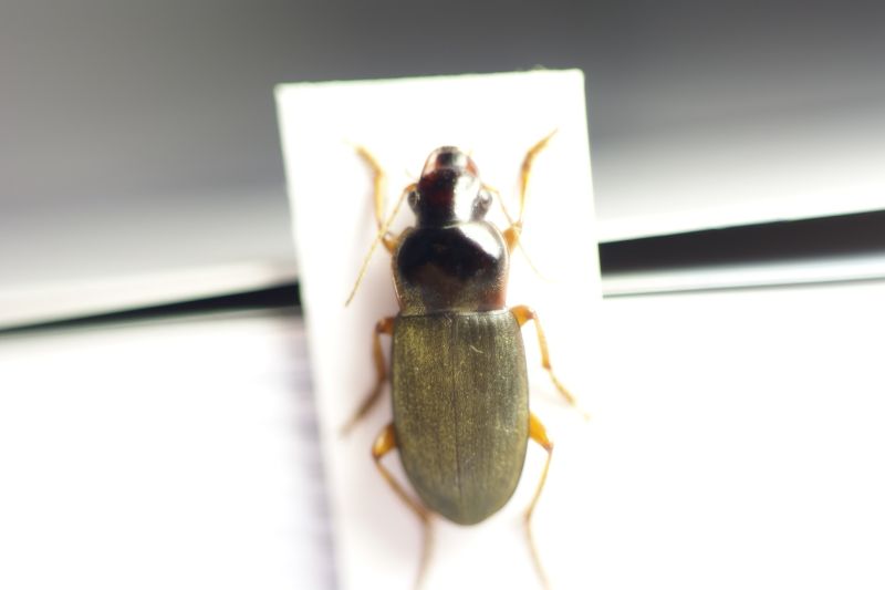 Non scrivi con che apertura di diaframma hai scattato le foto. Se fai uno scatto singolo, devi necessariamente chiudere il diaframma a 11 o più, altrimenti hai solo parte dell'insetto a fuoco. Ma così facendo perdi gradualmente i dettagli. La qualità migliore in genere la si ottiene chiudendo il diaframma di un paio di scatti rispetto all'apertura massima (varia secondo il tipo di obiettivo e l'ingrandimento che vuoi ottenere). Per un obiettivo come quello che stai usando, credo che un buon compromesso* sia tra 3,5 - 4 per alti ingrandimenti e 5,6 - 8 per ingrandimenti minori. Nel caso di quel carabide, un 5,6 dovrebbe andare bene. Così facendo, però, hai una scarsa profondità di campo, e solo parte dell'insetto a fuoco. La cosa si risolve facendo più scatti, mettendo a fuoco a distenze leggermente diverse (l'inquadratura deve rimanere la stessa), in modo da vere una serie di foto con a fuoco diverse parti dell'insetto, suvari piani. Poi tutta la serie di foto la dai in pasto ad un programma di stacking (gratuito c'è CombineZP, che funziona decentemente, oppure a pagamento ti consiglio Zerene), che le unisce tutte in un'unica immagine, prendendo da ciascuna solo le parti a fuoco. ALtrimenti, con una singola foto puoi solo averla in gran parte sfocata (con diaframma aperto) o a fuoco ma sempre un po' confusa (con diaframma molto chiuso).
