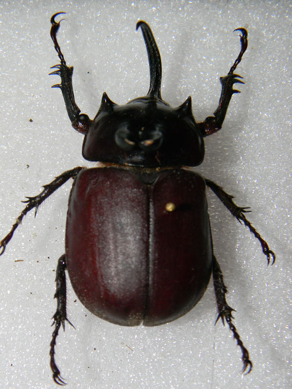 Ciao. Credo che il dinastino possa realmente essere una femmina di Oryctes rhinoceros, specie ad ampia distribuzione asiatica.  Ciao Piero