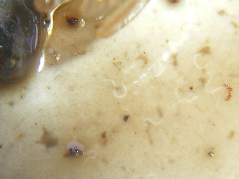 In effetti si tratta di Nematodi: tuttavia, non è possibile stabilirne il Genere e tanto meno la Specie. È possibile, però, in base alla descrizione tassonomica dell'ospite colpito , procedere per induzione. Questi Nematodi attaccano nella loro fase infettiva (o L5, dopo varie mute) gli Insetti (sono chiamati, infatti, Nematodi Entomopatogeni); nel caso dei Coleotteri, i più diffusi in Natura sono i Nematodi del genere Heterorhabditis e Steinernema che attaccano le larve dei Coleotteri e rilasciano germi patogeni per l'Insetto, uccidendolo. Anzi, proprio per tale prerogativa, sono adoperati nella