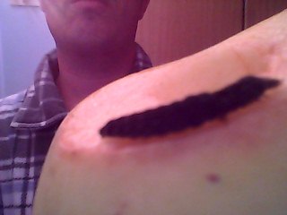 adesso ho preso una mela fresca , l'ho tagliata e fatto un buco e la larva sta girando la dentro sondando le pareti, vediamo.