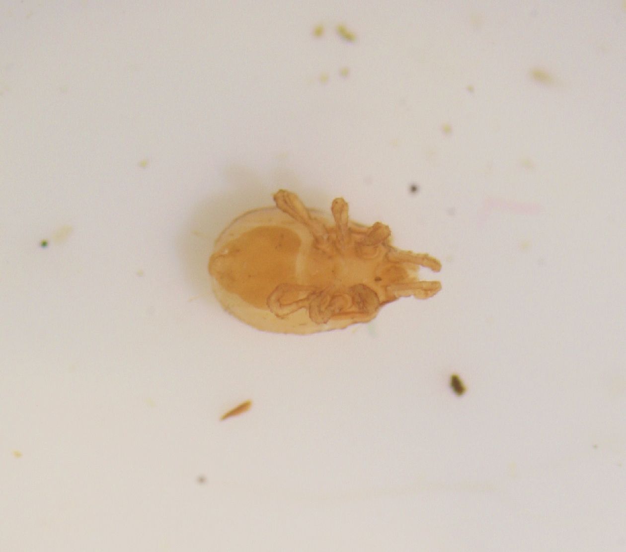 Già da qualche tempo ho iniziato a conservare tutti i ragnetti & affini che mi capitano durante le numerose vagliate bolognesi Ovviamente i problemi che incontro nel riconoscere questi fantomatici mesostigmata non sono pochi....a cominciare dalle dimensioni. Se da un lato abbiamo quei ragnetti abbastanza tipici che sembrano degli addome di formica con due zampe molto lunghe, esiste poi tutta una serie di sconosciuti di cui ignoro cosa possano essere. Proprio per questo ho pensato a questo post Vi sottopongo (anzi sottopongo a Massimo), una breve carrellata di ottozamputi, una decina circa, recentemente raccolti a Castel D'Aiano, ameno comune della collina bolognese; siamo a circa 900 mt. slm in una zona boscosa (castagno e quercia). Tutte le bestiole sono state raccolte con il vaglio, non in formicai. Le dimensioni non le ho prese.....ma solo perché non sono in grado; escludendo la prima, una sorta di gigante che supera abbondantemente il millimetro, tutte le altre rimangono al di sotto....alcune molto molto sotto al millimetro Quasi tutti sono fotografati sia dorsalmente che ventralmente.Quindi la domanda è: quali sono i mesostigmati ?? Acaro 01 Acaro 02 |