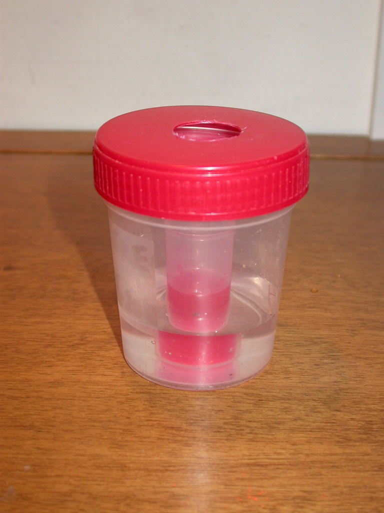 Ecco la trappola: un comune contenitore per le analisi delle urine con coperchio e una provetta di plastica alta e sottile: