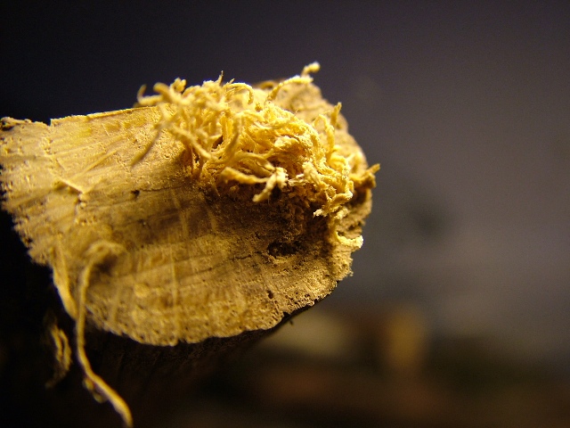 E non la raccoglierai! non da quella legna intendo. La mesosa nebulosa e' una specie piuttosto igrofila che attacca legna piu' umida e deperita. La tua roverella mi pare molto dura e fresca, morta da un paio di anni al massimo.