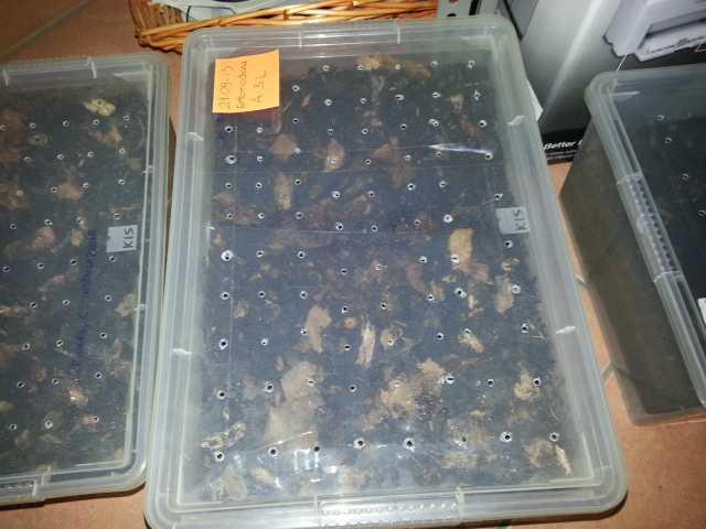 ciao a tutti...il 21 settembre ho accasato 11 larve di scarabeidi esotici nelle scatole che vedete in foto, con terriccio, legno marcio, foglie secche e quanto mi è stato consigliato dai venditori...