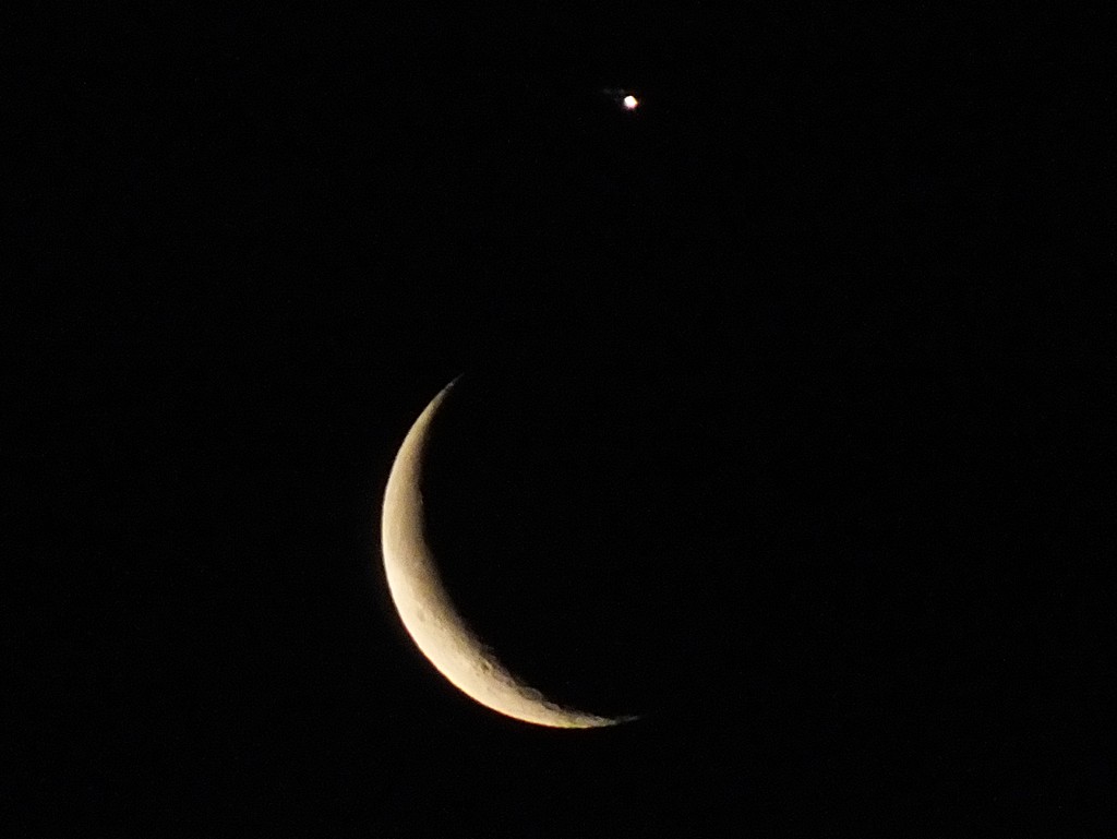 a questa foto di Luna e Venere quasi allineate, fatta qualche mattina fa, prima dell'alba, alla massima lunghezza focale, con la macchina in mano, senza cavalletto, attraverso i doppi vetri della finestra