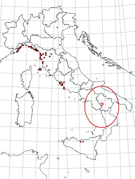Mi pare abbastanza anomalo il fatto che non sia presente sulla costa tirrenica in Campania e Calabria ma si ritrovi in Lazio e in Sicilia con una evidente discontinuità.