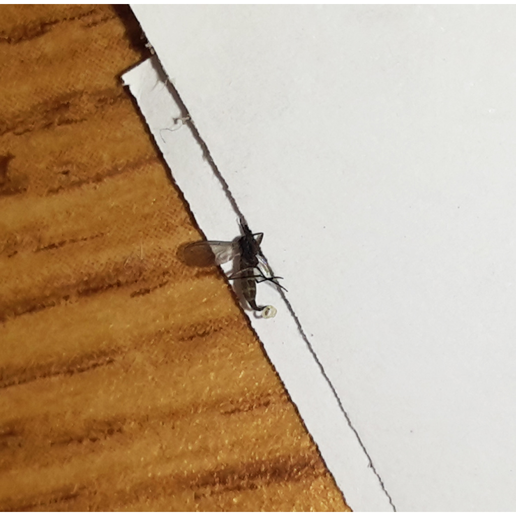 Proprio qualche sera fa mi ha punto un insetto a casa e ho avuto una reazione allergica con febbre e gonfiore e dolore nella parte interessata. Adesso sono sotto cura di antibiotici e cortisone. Sono riuscita a fotografare l'insetto che mi ha punto, ammesso che sia stato questo. Allego la foto. L'insetto è in realtà delle dimensioni di un moscerino, pochissimi millimetri e di colore nero. Spero che la foto sia abbastanza chiara. Sono curiosa di sapere che animaletto si tratta.