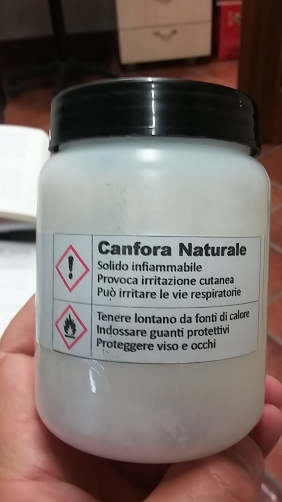 Se non riesci a trovare la canfora naturale dalle tue parti e la vuoi prima di Entomodena prova a mandare un MP a Marcos (Malavasi Marco) lui può mandartela.Ciao Gildo