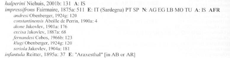 Non ho il Catalogo di Loebl & Smetana, ma avevo controllato nel recente (2016) Catalogue of Paleartic Coleoptera vol 3 Revised and Updated Edition di Loeb (Ivan) e Loeb (Daniel), dove ne la revisione, ne l'aggiornamento, ne l'assenza di Smetana hanno aggiunto niente a quanto ha riportato Marcello. E' esattamente lo stesso: