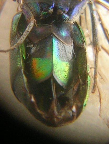 Ciao Andrea, hai visto bene... l'addome non è verde, anzi è più sul rosso (con dei lievi riflessi blu che non sono riuscita a catturare). Metto un'altra foto che avevo scartato perchè meno a fuoco.