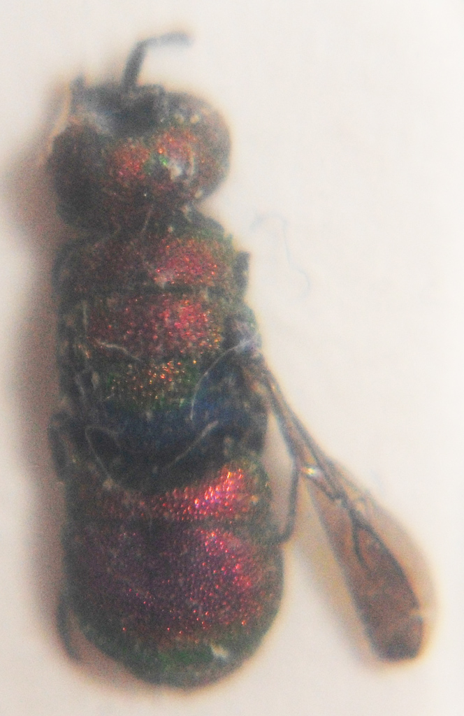 In effetti l'esemplare di Maurizio Bollino non è un vero incrassatum. Rispetto agli esemplari topotici siciliani ha le tegule vistosamente metalliche (caso raro tra gli Hedychridium ) e la forma del capo appare effettivamente diversa. La determinazione è arrivata basandosi sul fatto gli angoli posteriori del capo non sono 'angolosi', tuttavia l'aspetto complessivo è differente e senza un confronto diretto non è riscontrabile. In pratica il carattere discriminante finora era: tempie arrotondate o angolose. Sarebbe necessario estrarlo e vedere anche colore e punteggiatura degli sterniti II e III.