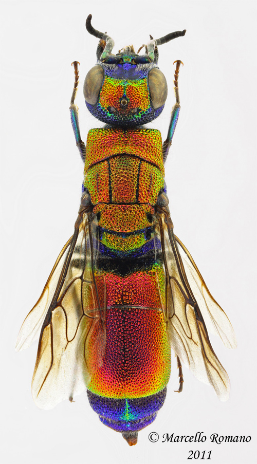 no no, intendevo proprio quello preparato, quello fotografato in natura su chrysis.net è evidentemente corretto :ok: , fra l'altro rispetto alla pulcherrima puoi notare, oltre al pronoto più allungato, la fronte estesamente rossa (nella pulcherrima al più macchiata di rosso al centro, oppure niente affatto rossa) e l'area mediana del pronoto sfumata in verdastro, più intensamente in avanti, anziché uniformemente blu scuro