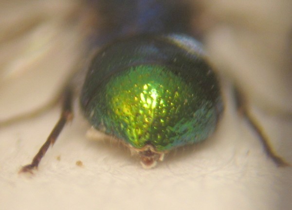 dalla punteggiatura dello scutum non sembra uno Pseudomalus, direi invece un Philoctetes; se guardi la punteggiatura dell'area mediana dello scutum vedi che nello Ps. auratus ci sono dei grossi punti raggruppati nella parte posteriore, a ridosso dello scutello, mentre qui ce ne sono alcuni allineati lungo i notauli, cioè i solchi che separano l'area mediana dalle laterali