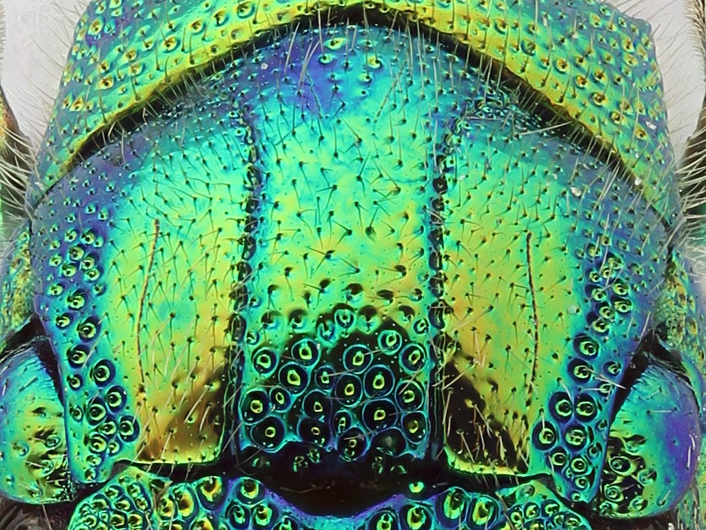 infine, la punteggiatura dell'area mediana dello scutum nel calens è uniformemente densa e grossolana su tutta la superficie; occasionalmente lo stesso si può osservare nel cyanurum, ma la punteggiatura come in questo, densa e grossolana a ridosso dello scutello, fine e spaziata sul resto della superficie, indica senza incertezze il cyanurum