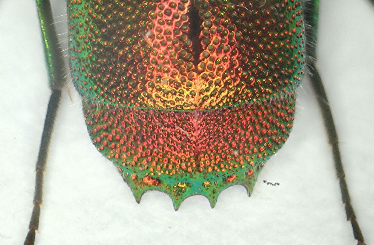 e che oltre ad essere blu-verde con solo i margini post. dei tergiti addominali rosso dorati, ha il margine apicale con 6 denti, non 4 ;) ...