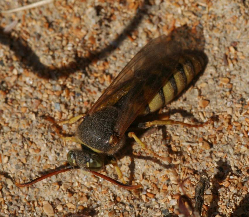 Sassari (Dune di Porto Ferro) 8 giugno 2009 Foto in habitat: Clipeo: labbro largo più di 3 volte l'altezza: Primo flagellomero non più lungo del 2°+3°: |