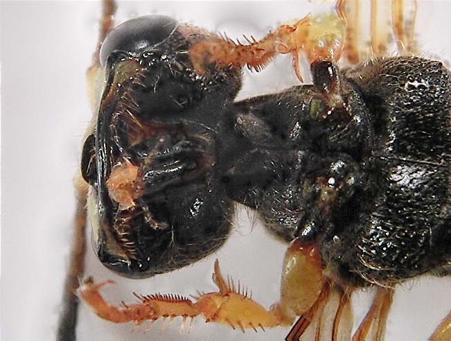 Femmina di Cerceris arenaria. C. sabulosa ha gastro con secondo tergum macchiato di giallo anteriormente (colorazione "irregolare"), non posteriormente come qui.