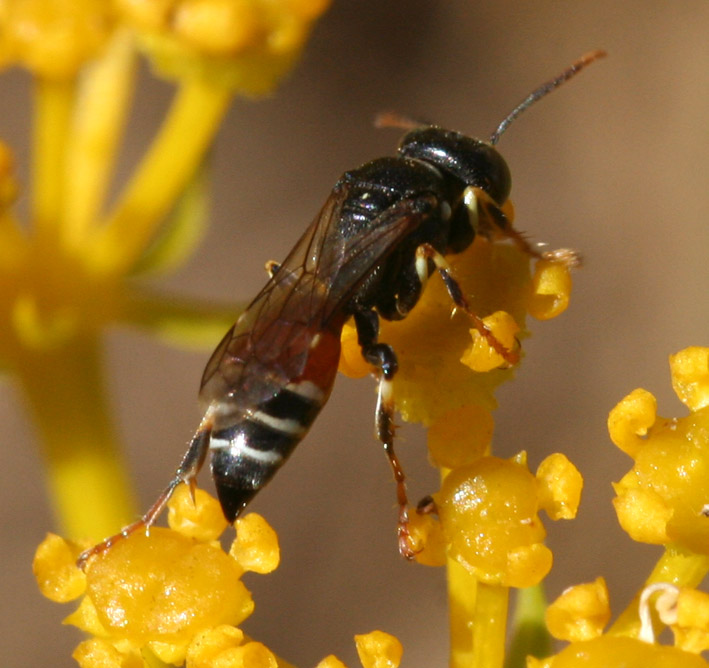 Con le chiavi della fauna d'Italia e di quella di Francia si arriva, come dici tu, a elegans. L'unica femmina che ho in collezione (di Domusnovas, tra l'altro...) è praticamente identica alla tua. L'aspetto generale, la colorazione delle antenne e, se vedo bene nella foto, la striatura del triangolo propodeale (che in exiguus si annulla posteriormente; nella tua foto si vede male, però...), concordano con questa specie. Solo per scrupolo, però, (derivante da insufficiente conoscenza di questi crabronidi e dal fatto che sto ragionando su delle foto) la archivierei come Harpactus cfr. elegans.