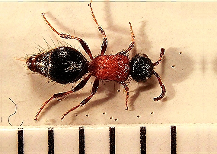 Infatti, essendo questa femmina attera, come tutte quelle dei Mutillidi, può essere caduta nella trappola Malaise solo perché trasportata in volo dal maschio durante l'accoppiamento...