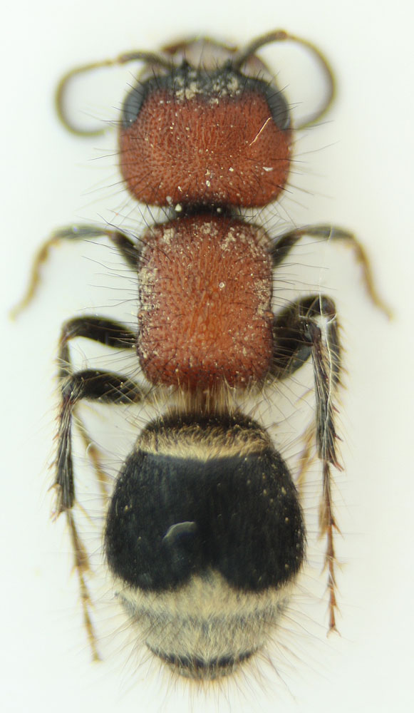 Questa femmina di Myrmilla appartiene al gruppo "caucasica/erythrocephala" (Myrmilla s. str.).