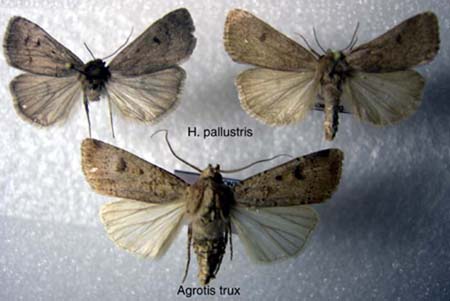 Ciao Silviana, dopo aver ravanato in collezione escludo A. gluteosa e propendo per Agrotis trux (specie molto variabile). Nell'immagine allegata vi sono anche due esemplari di H. pallustris (di uno manca l'addome, malefici antreni!!!  ) Attendo un tuo parere e anche altri  P.S. mi scuso x le foto