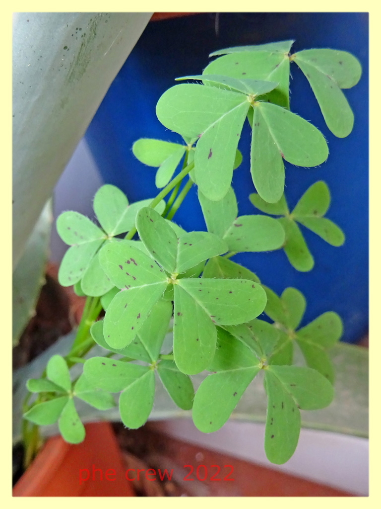 ….a questo punto le larve cambiano colore….dal verde al marrone. Questa una larva di circa 22 mm. fotografata il 23.1.2023. ….dopo quasi un mese di smangiucchiamento credevo di essere vicino all' impupamento, ma aime' quando andai a sbirciare trovai l' ultima larva dopo essersi rimpinzata con un bel pezzo di foglia a pancia all' aria morta stecchita ! Questa foto e' stata scattata il 13.2.2023. Avevo poi messo gia' da un bel po di tempo una delle piante di cui si nutrivano con tutte le radici e terriccio in un recipiente chiuso ma forato per far si che la larve e la pianta che cresceva rapidamente si ossigenassero. La cicciottella pero' mangiava avidamente ...tenendo sempre spoglia la piccola pianta, e due giorni prima che scattassi la foto qui sotto gli diedi una bella foglia fresca presa da un vaso...ovviamente della stessa specie di pianta. Solo dopo mi sono accorto che l' artefice della sua morte sono stato io !....prima di dargli la foglia avevo spezzettato un peperoncino e fregandomene non mi sono lavato le mani, dunque deduco che sia morta per l' elevata Capsaicina posatasi sulla foglia . E' l' unica cosa logica che mi viene in mente ...aggiungo le foto delle piante di cui si stavano nutrendo , inizialmente mangiavano le foglie di tutte e due con gran gusto, poi nel recipiente lasciai solo quella con foglie piu' grandi. Le larve erano circa 15 / 20 ma con il passar del tempo ne trovai sempre meno fino ad arrivare ad una. Credo pero' che non sia stato dipeso da cio' che mangiavano ma dalle temperature altalenanti di gran freddo e caldo di quei giorni. la prima pianta e' un Oxalys sp., la seconda (quella che poi lasciai permanente nel recipiente) sembra una Parietaria sp. |