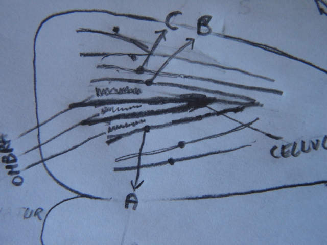 Ho fatto delle foto paticoloreggiate dei punti (a mio avviso) salienti di determinazione correlati ad un disegno ( un po' da manovale) .Disegno dell'esemplare in esame posto orizzontalmente ...giudicate i risultati