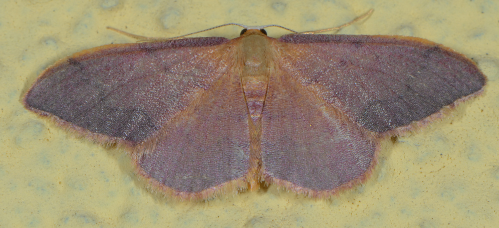 Un piccolo Geometridae (15-20 mm di apertura alare) di un insolito colore rosa-lilla che non riesco a trovare in nessuna specie. Probabilmente la colorazione non è una costante della specie e mi ha solo tratto in inganno. Può essere una colorazione insolita di Idaea ochrata (Scopoli, 1763)?