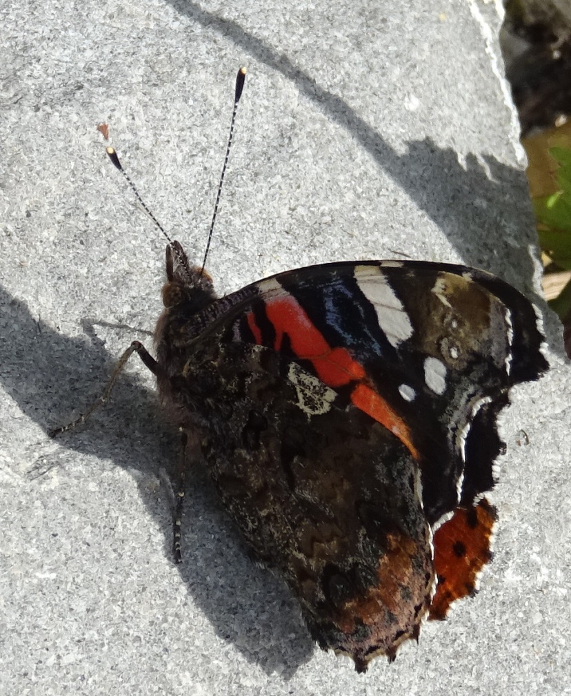 Salve, purtroppo non si vede la parte superiore delle ali, ma penso sia semplicemente una Vanessa atalanta. Misura compatibile. Che ne dite? Grazie!