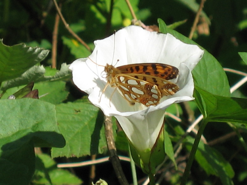 Ho fotografato questo adulto di Issoria lathonia (?) - Nymphalidae posato su un fiore di Convolvulus sp. (arvensis?) in un pascolo al limitare del bosco misto a prevalenza Castanea sativa.