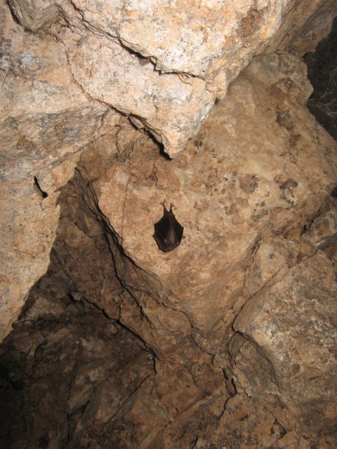 Ecco la roccia bagnata E la nottua Alcuni altri inquilini presenti: i ragni che tappezzavano le pareti Una rana E un simpaticissimo Rhinolophus, un piccolo pipistrello con la faccia un po' da maiale  Vicino all'uscita del cunicolo si rifugiano invece le Catocala elocata Ricapitolando ogni specie occupa un suo spazio ben preciso all'interno del cunicolo (escludendo ragni e Hypena che sono un po' ovunque), le Catocala subito all'ingresso, le Mormo nelle parti più alte (le due "campane" e la camera a sinistra) e l'altra nottua solo nell'ultimo metro del cunicolo dove c'è l'acqua.