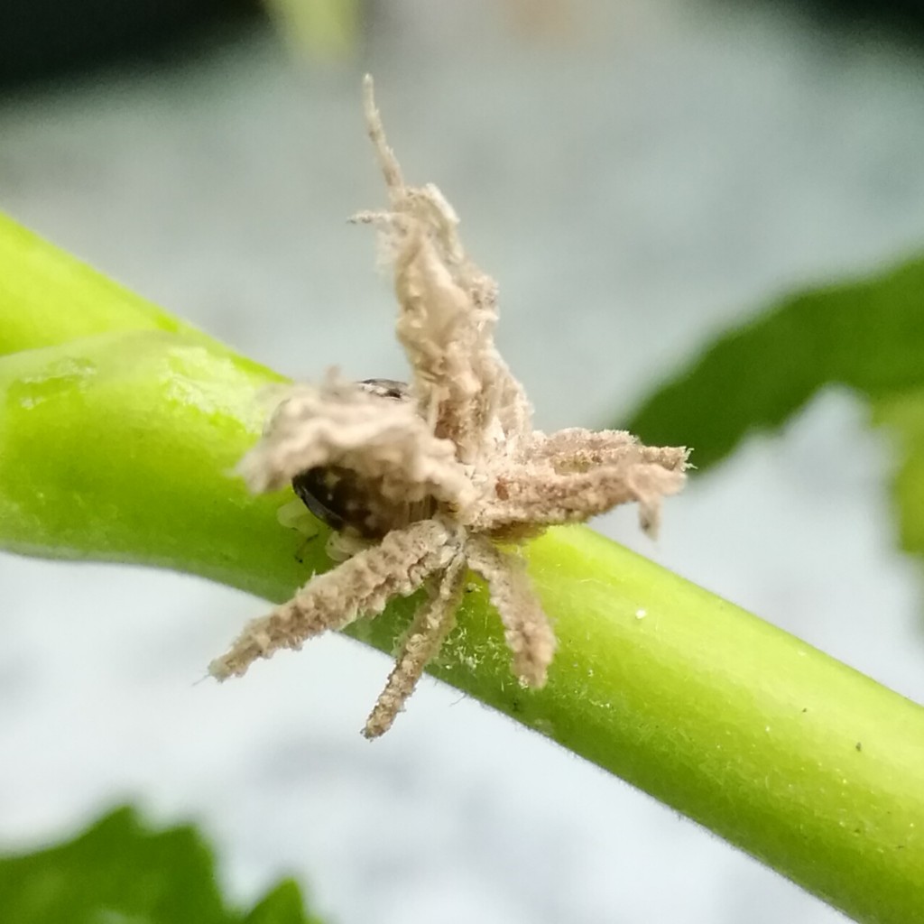 Nel tuo caso non capisco quale sia l'artropode parassitato, bisognerebbe ripulirlo dalle ife fungine che lo ricoprono, ma sembrerebbe un ragno.
