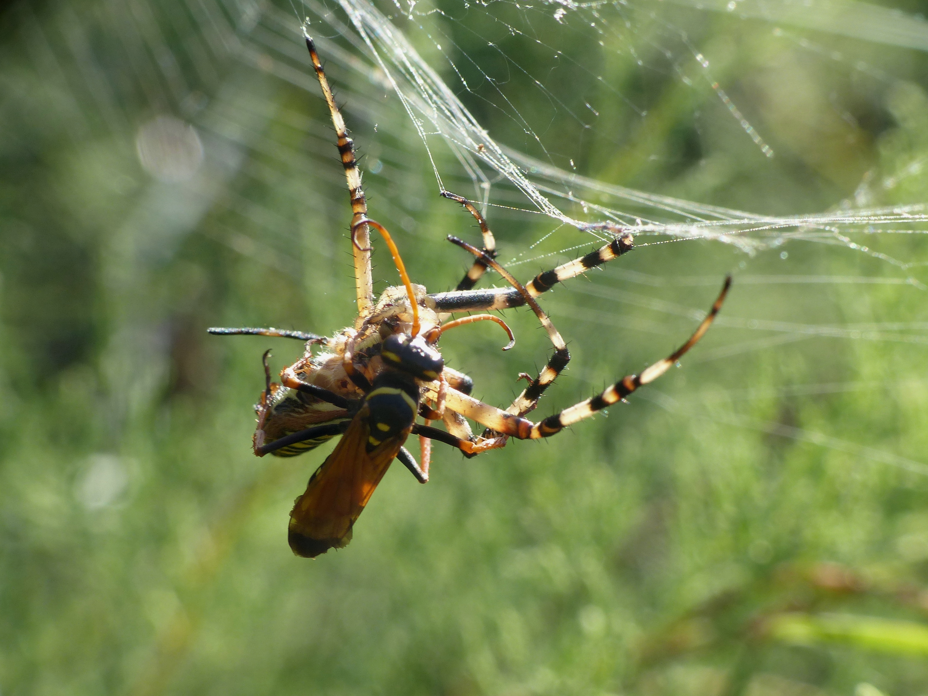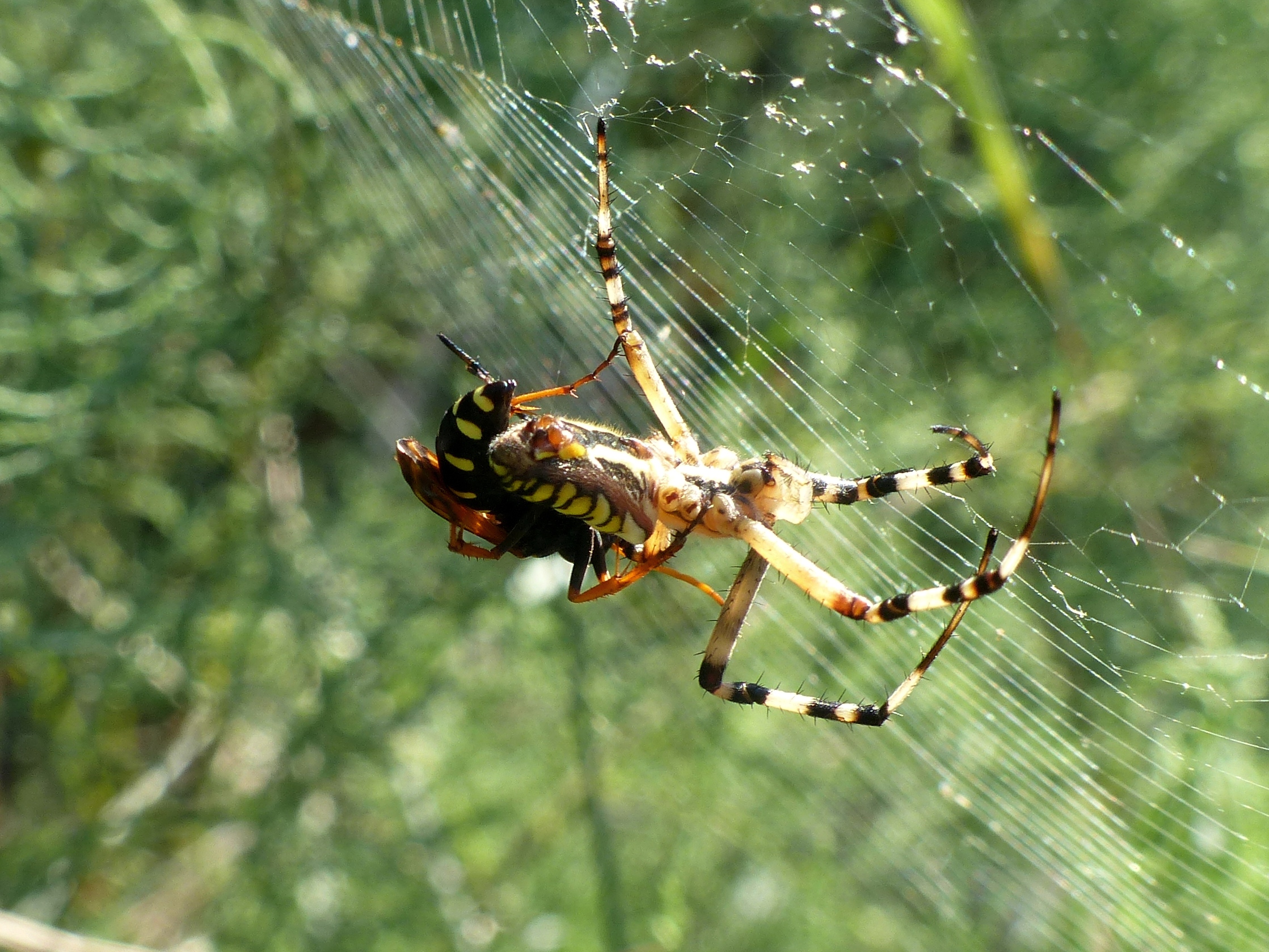 Non ho capito perché il predatore si è trattenuto a lungo (un quarto d'ora almeno) aggrappato al ragno senza pungerlo, ma mordicchiandolo.