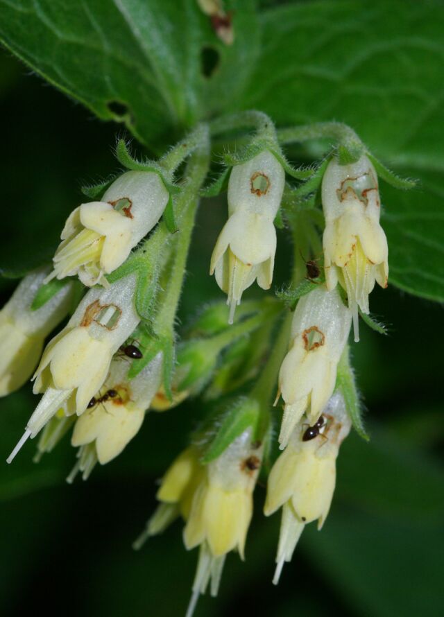 Sui Colli Euganei (Mt. Cecilia (PD), 3/4/2011) ho trovato ampie aree di sottobosco a Symphytum cfr. bulbosum con tutte le infiorescenze perforate da Bombus. Ecco un dettaglio di una infiorescenza e un ladro all'opera.