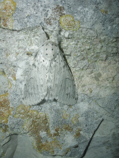 Quella che ho fotografato io era effettivamente su un tronco di tiglio. In altri anni, su quella pianta ci ho visto anche i suoi bruchi. Quella bianca a puntini di Maura è assolutamente invisibile sul muro! |