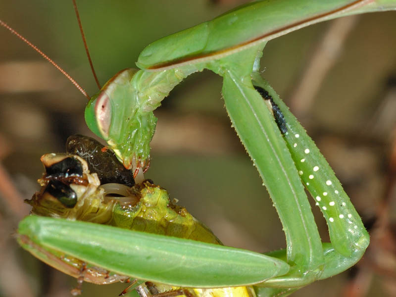 Una volta mentre fotografavo una mantide che banchettava con un ortottero