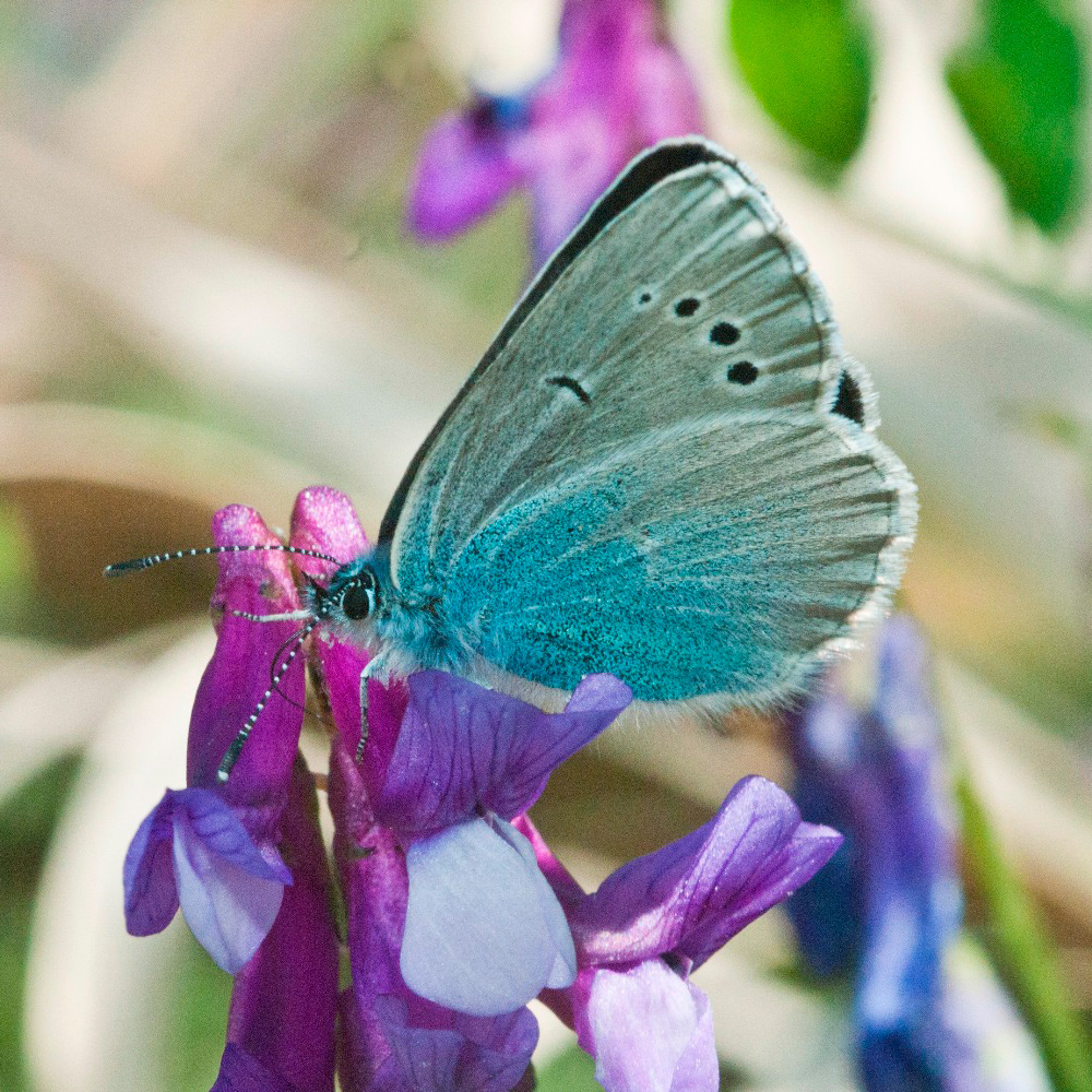 Ho visto solo Glaucopsyche alexis piu' questo licenide (foto con ali aperte) che non sono riuscito a vedere ad ali chiuse.