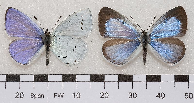 Celastrina argiolus argiolus, male, female, set specimens, England, Alan Cassidy photo*