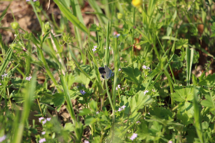 A. nicias è una specie d'alta montagna. Da quel poco che si vede dalla tua foto direi che la più probabile sia Cupido minimus Fuessly, 1775 ma non riuscendo a vedere bene il rovescio potrebbe anche essere un Cupido (Everes) alcetas Hoff., 1804