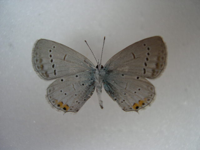 Si tratta sicuramente di Everes argiades Pallas 1771. Sono caratteristiche le macchie arancioni sul rovescio delle ali posteriori. Ciao, Zerun.